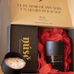 Coffret d’expérience immersive autour de l’univers de Red Velvet. Sel de bain Rose de l’Himalaya aromatisé aux senteurs exquises d’huiles essentielles de bois de rose et patchouli. Bâton 100% naturel de Palo Santo pour fumigation. Pétales de roses séchées et bougies flottantes pour le bain. De quoi créer un rituel charmant, raffiné et purifiant pour votre corps et votre esprit.